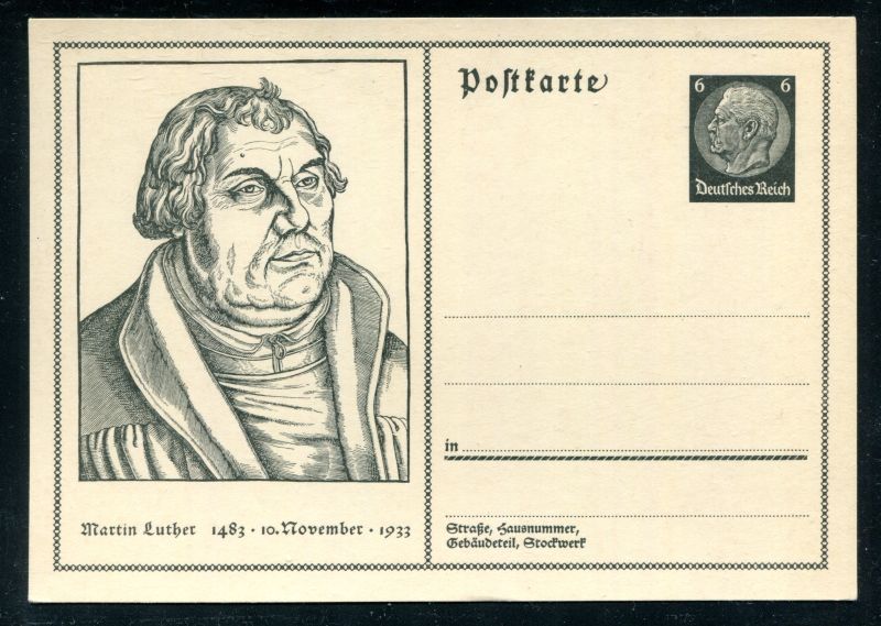 P 224 Ganzsache, Postkarte, Martin Luther 1933 ungebraucht. Nr. 9028