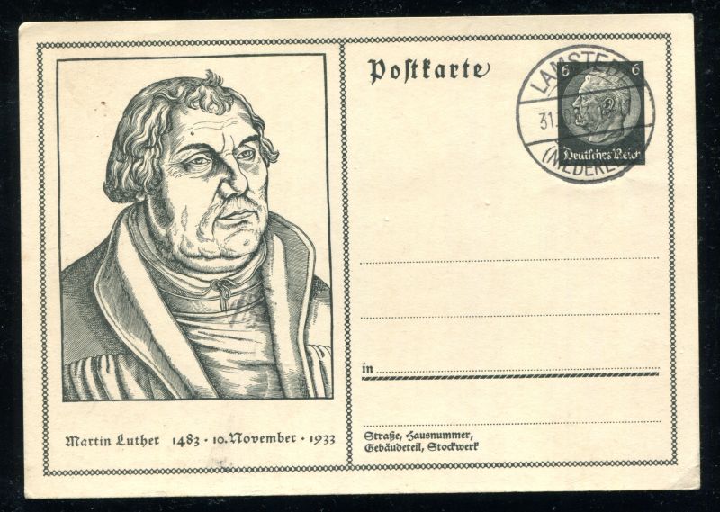 P 224 Ganzsache, Postkarte, Martin Luther 1933 Tagesstempel 31.10.33 Nr. 9031