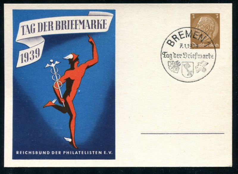 P 239/02 Ganzsache, Postkarte, 1939 Tag der Briefmarke mit Sonderstempel "BREMEN" 7.1.39" Nr. 9041
