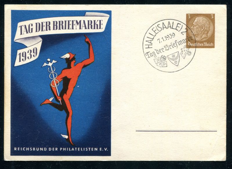 P 239/02 Ganzsache, Postkarte, 1939 Tag der Briefmarke mit Sonderstempel "HALLE (SAALE)2" 7.1.39" Nr. 9042