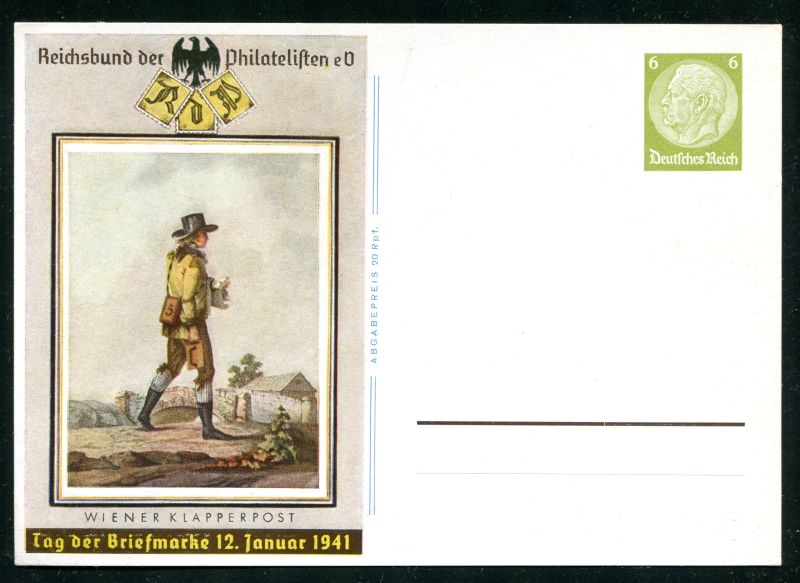 P 241 Ganzsache, Postkarte, 1941 Sonderpostkarte zum Tag der Briefmarke am 12.1.1941 ungebraucht. Nr. 9043