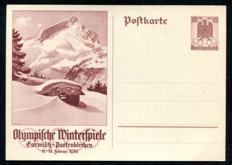 P 258 Ganzsache, Postkarte, 1936 Sonderpostkarte. Olympische Winterspiele in Garmisch - Partenkirchen 6.-16. Februar 1936 ungebraucht. Nr. 9082