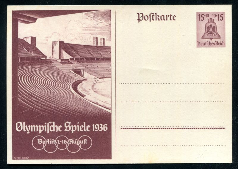 P 260 Ganzsache, Postkarte, 1936 Sonderpostkarte. Olympische Spiele in Berlin vom 1.-16. August 1936 ungebraucht. Nr. 9086