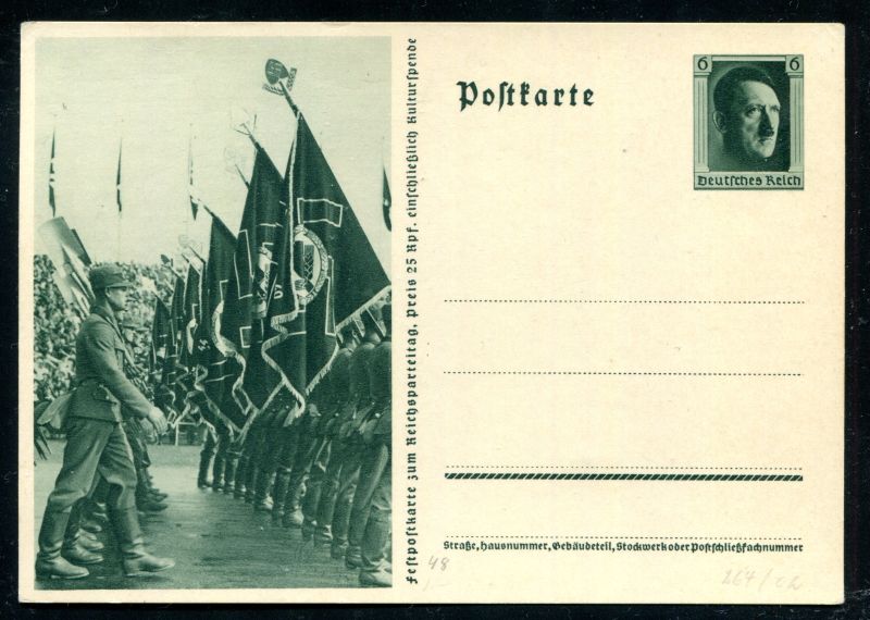 P 264/02 Ganzsache, Postkarte, 1937 Sonderpostkarte. Vorbeimarsch des Arbeitsdienstes. ungebraucht. Nr. 9103