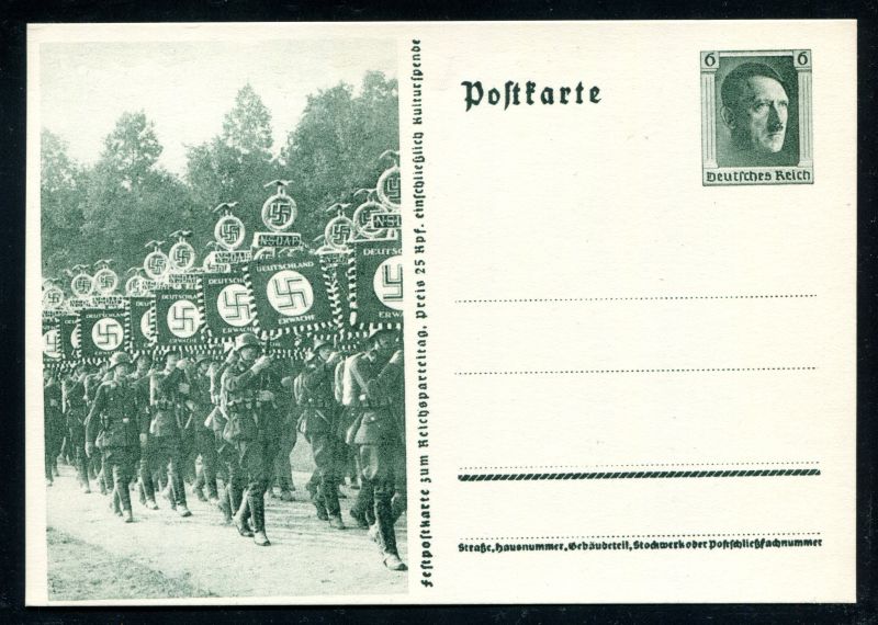 P 264/06 Ganzsache, Postkarte, 1937 Sonderpostkarte. Standarten der SS, ungebraucht. Nr. 9127