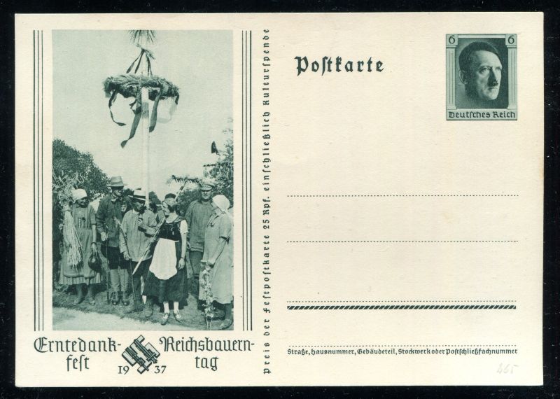P 265 Ganzsache, Postkarte, 1937 Sonderpostkarte. Erntedankfest. Reichsbauerntag, ungebraucht. Nr. 9146