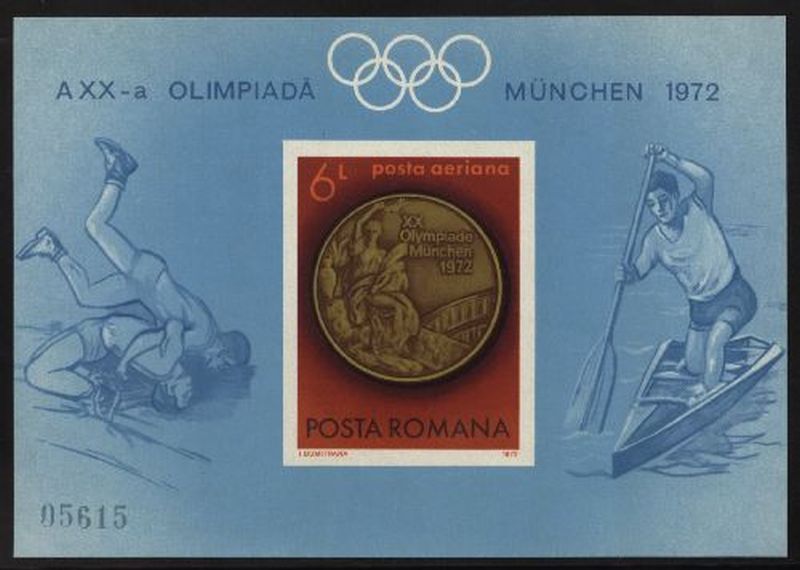 1972 Block 101 , Olympische Sommerspiele in München. Goldmedaille, geschnitten. Mi.(85.--)Euro.