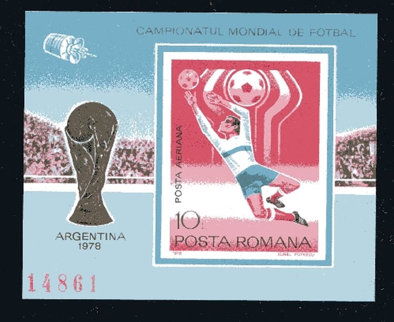 , Torwart beim Fangen des Balls, WM-Emblem. Mi.(60.--)Euro.
