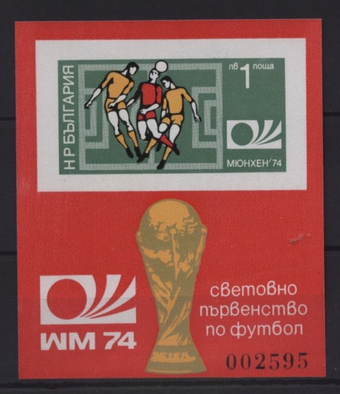 1974 Block 47B , Fußball. Kopfballduell, Spielfeld, Emblem. Mi.(150.--)Euro.
