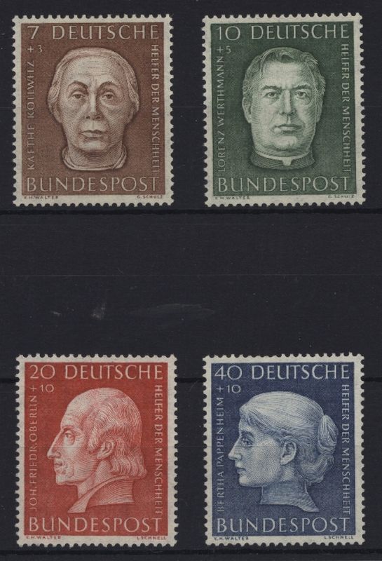 1954 Mi.Nr. 200/03 , Wohlfahrt, Helfer der Menschheit, kompletter Satz. Mi.(55.--)Euro.
