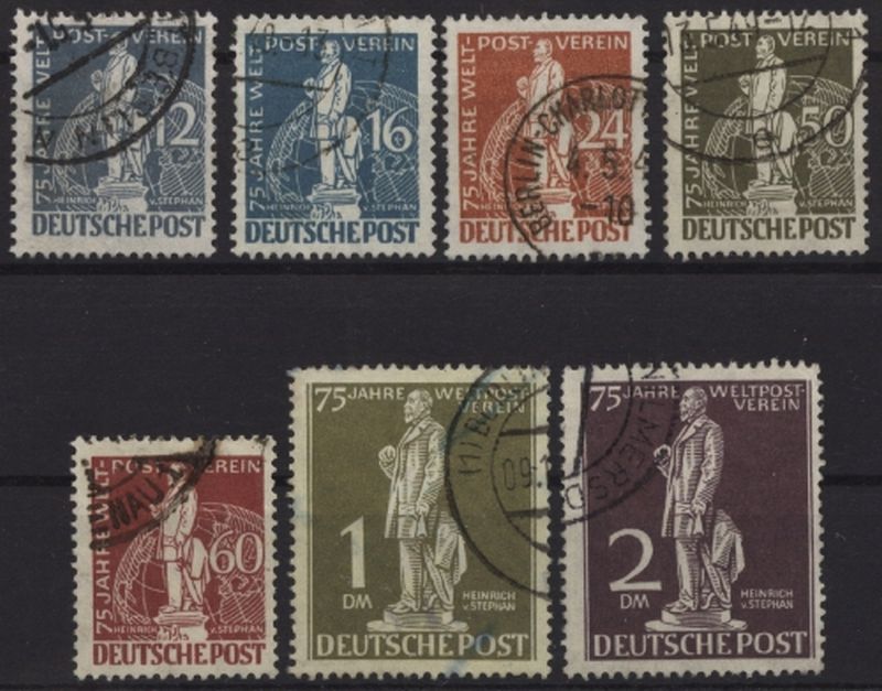 1949 Mi.Nr. 35/41 , 75 Jahre Weltpostverein, kompletter Satz mit Rundstempel. Mi.(320.--)Euro.