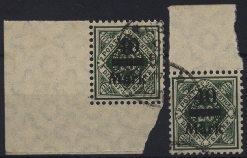 LIQUIDATIONSPOSTEN. 1922 bis 1923 Mi.Nr. 165 , Dienstmarken Ziffern 1mal aus der Bogenecke unten links und 1mal mit Oberrand.