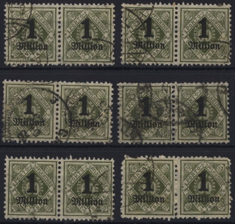 LIQUIDATIONSPOSTEN. 1923 Mi.Nr. 179 , , Dienstmarken Ziffern 1 Mio. auf 60 Pf 6 mal waagerechte Paare. Mi.(380.--)Euro.