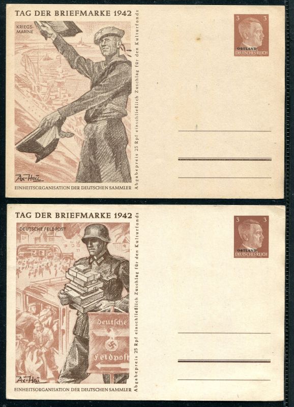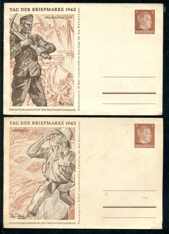1942 Tag der Briefmarke. Ostland 4 verschiedene ungebrauchte Karten.
