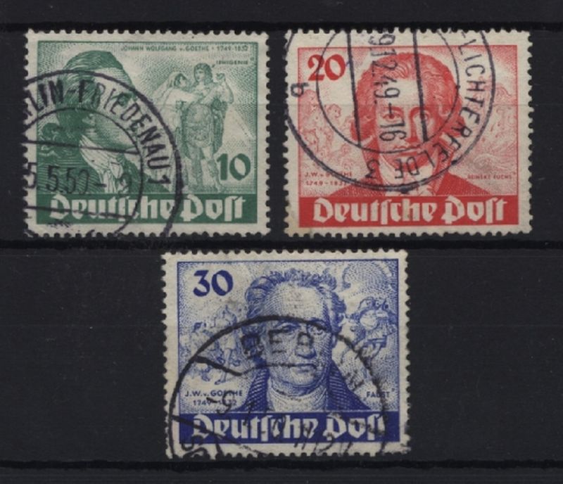 1949 Mi.Nr. 61/63 , Goethe, kompletter Satz, gut lesbarer Rundstempel, in üblicher Zähnung. Mi.(180.--)Euro.
