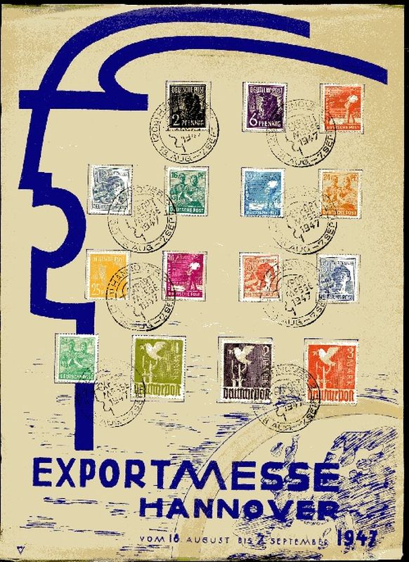 1947 Mi.Nr. 943/62 , ex. Messe - Ausgabe mit Messe - Sonderstempel "EXPORTMESSE HANNOVER vom 18. August bis 7. September 1947. Sonderblattausgabe.