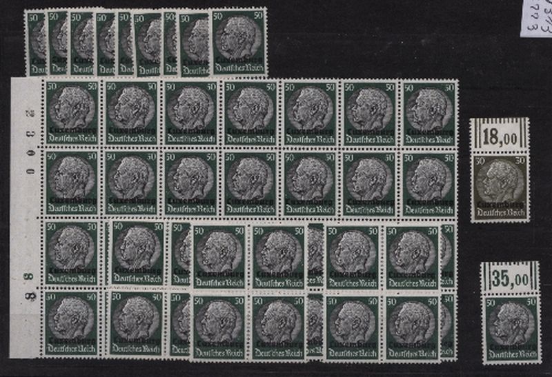 1941 Mi.Nr. 13 , Freimarken Hindenburg 50 Pfennig, mein in Bogenteilen mit Aufdruck: "Luxemburg", zusammen 50 Stück. Mi. (150.--)Euro.