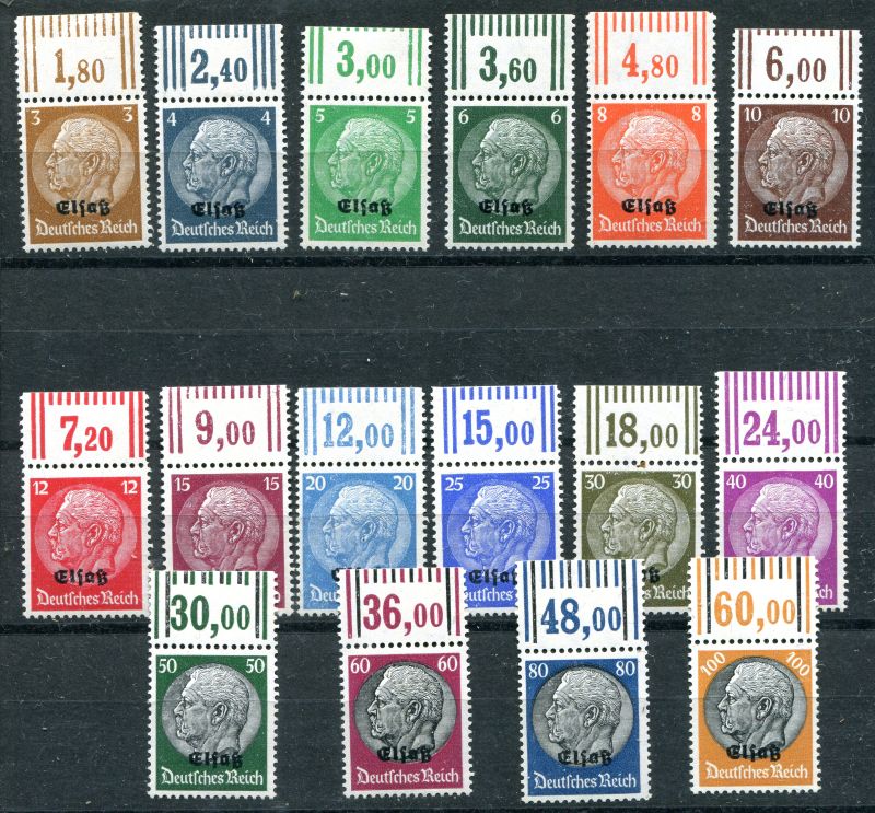 1940 Mi.Nr. 1/16 , Freimarken Hindenburg mit Aufdruck: "Elsaß", kompletter Satz mit Oberrand. Mi. (200.--)Euro.