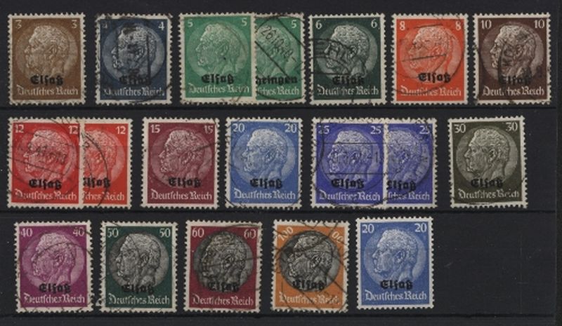 1940 Mi.Nr. 1/16 , Freimarken Hindenburg mit Aufdruck: "Elsaß", kompletter Satz.