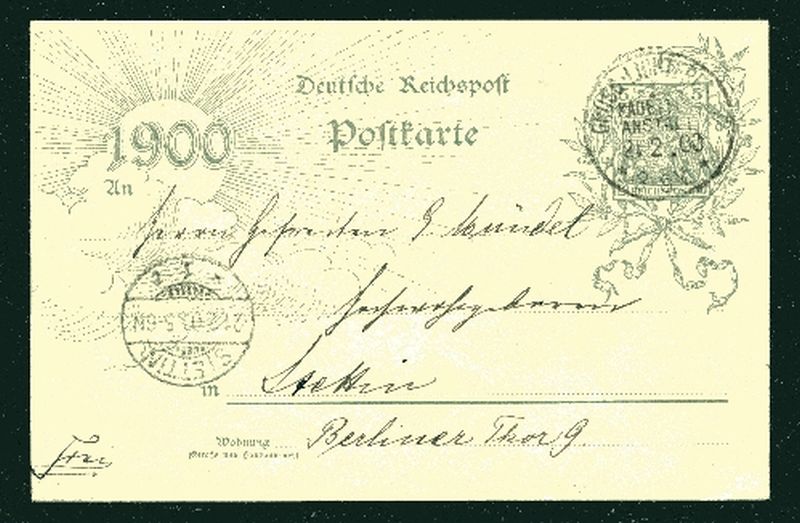 1900 Postkarte nach Stettin 21.02.00 an Herrn Mündel.