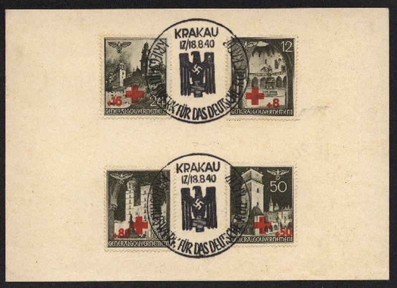 1940 Mi.Nr. 52/55 , kompletter Satz auf Vorlage Nr. 20951 mit 2 Ersttags - Sonderstempel vom 17/18.8.40 Krakau.