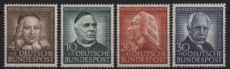 1953 Mi.Nr. 173/76 , Wohlfahrt. Helfer der Menschheit, kompletter Satz mit einwandfreie Zähnung. Mi.(85.--)Euro.