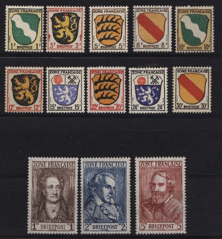 1945 Mi.Nr. 1/13 , Freimarken Wappen der französische Zone und Dichter, kompletter Satz.