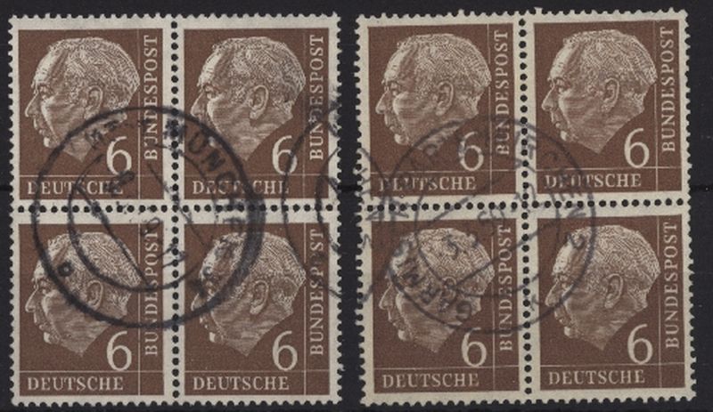 1954 Mi.Nr. 180 , , 6 Pfennig Heuss I. 2 Viererblöcke.