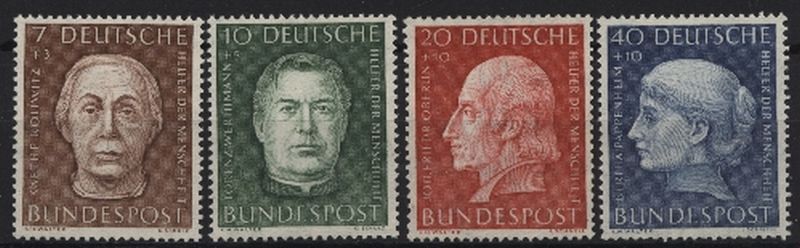 1954 Mi.Nr. 200/03 , Wohlfahrt, Helfer der Menschheit, kompletter Satz. Mi.(55.--)Euro.
