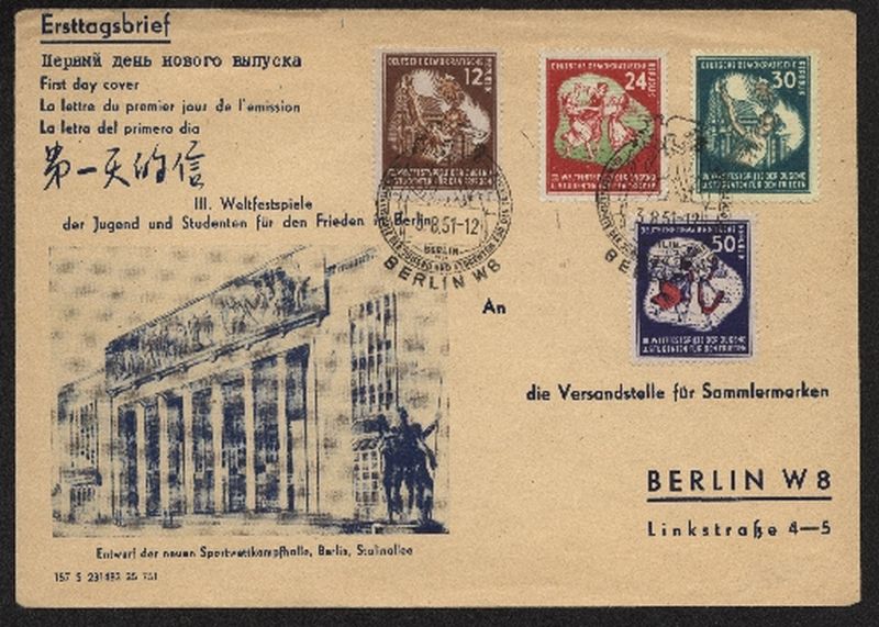 1951 Mi.Nr. 289/82 , , Weltfestspiele der Jugend, auf unbeschrifteten Schmuck - FDC. Mi.(50.--)Euro.