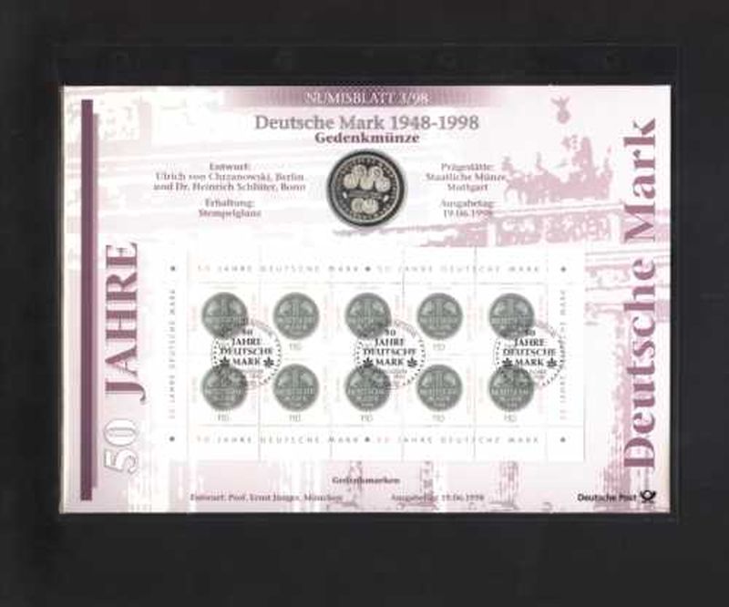 Numisblatt 1998/3 50 Jahre Deutsche Mark, mit 10 DM Sondermünze und Bundesrepublik Kleinbogen Nr. 1981