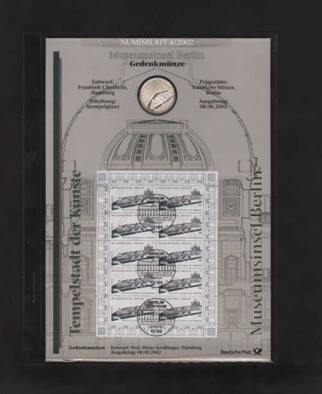 Numisblatt 2002/4 Museumsinsel Berlin, mit 10 EURO Sondermünze und Bundesrepublik Kleinbogen Nr. 2274