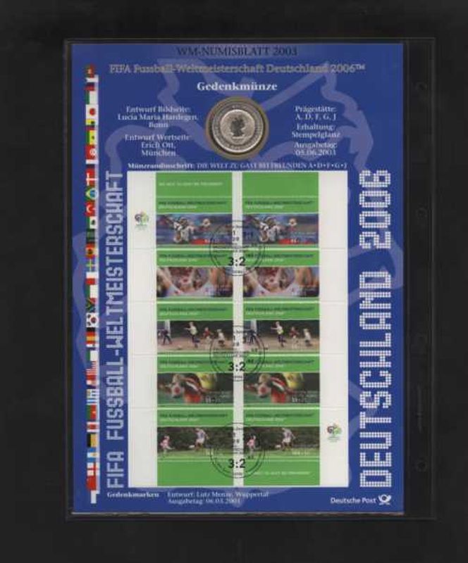 Numisblatt 2003/4 FIFA XVIII. Fußball - Weltmeisterschaft 2006 in Deutschland - 1. Ausgabe, mit 10 EURO Sondermünze und Bundesrepublik Kleinbogen Nr. 2324/28