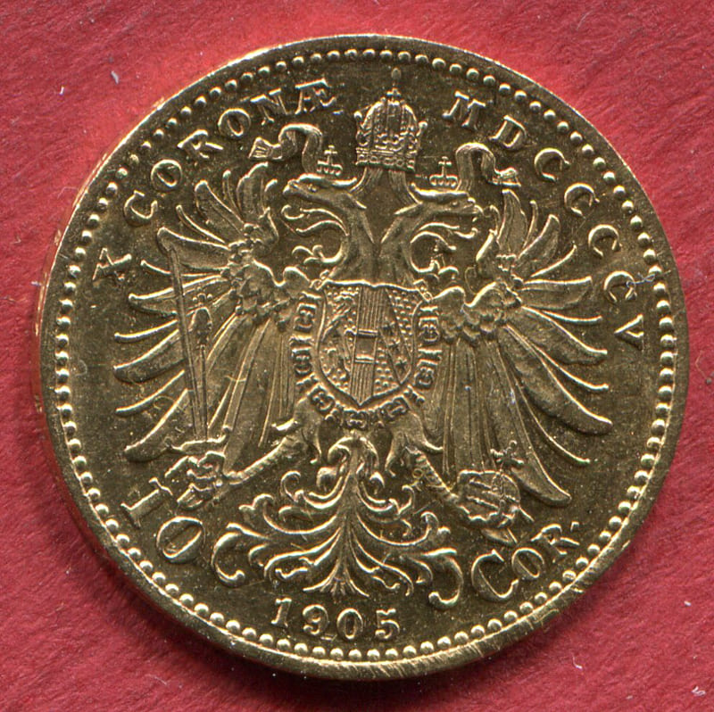 1905 Nr. 9 (378) ÖSTERREICH Goldmünze 10 Kronen. Joseph I. 900/1000 Gold. 3,387 Gramm.