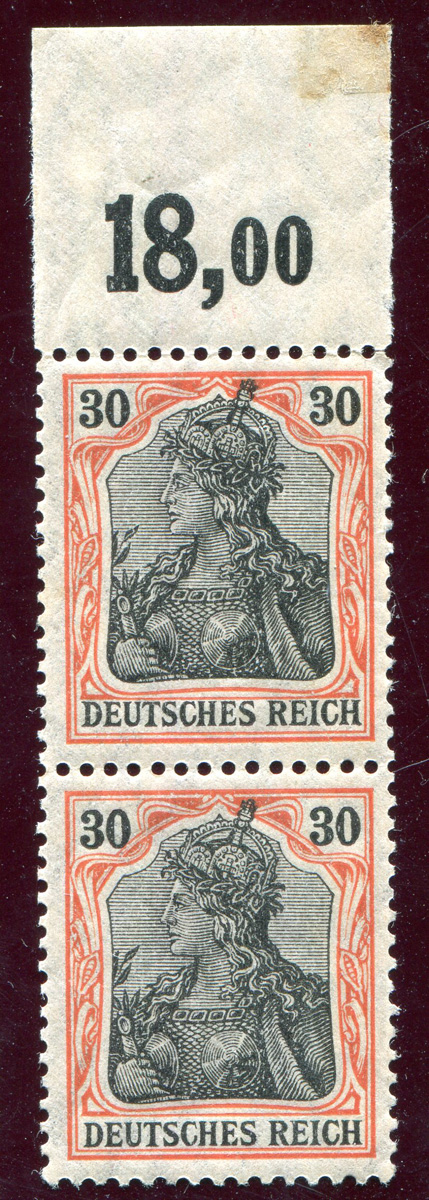 1905 Mi.Nr. 89I x, , , mit Oberrand, 30 Pfennig Germania, senkrechtes Paar. "OBERRAND". Mi. (780.--) Euro.