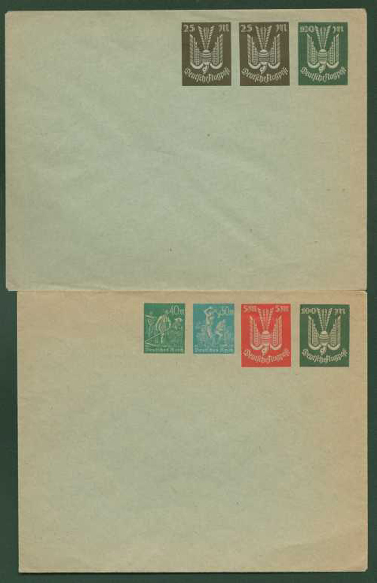 Deutsches Reich Ganzsachenumschlag PU 91 und PU 29, Flugpostmarken, ungebraucht, minimal an den Rändern gebräunt.