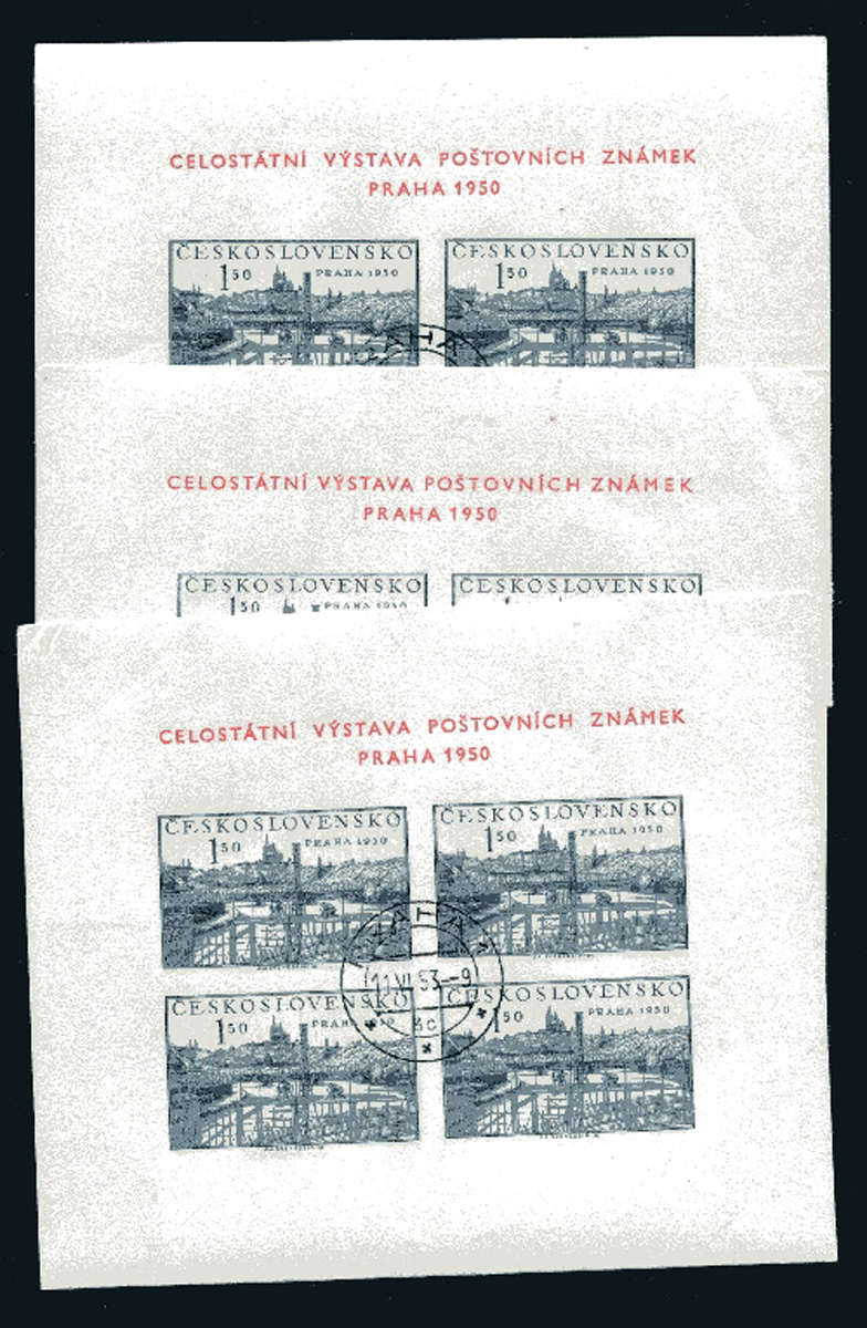 LIQUIDATIONSPOSTEN. 1950 mit Block 12 , 2 Blocks mit Stempel Prag 11.VI.53 und 1 Block mit Stempel Prag 13.VI.53 Mi. ca. (75.--)Euro.
