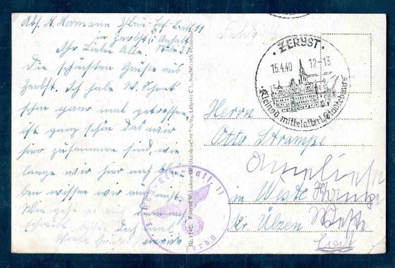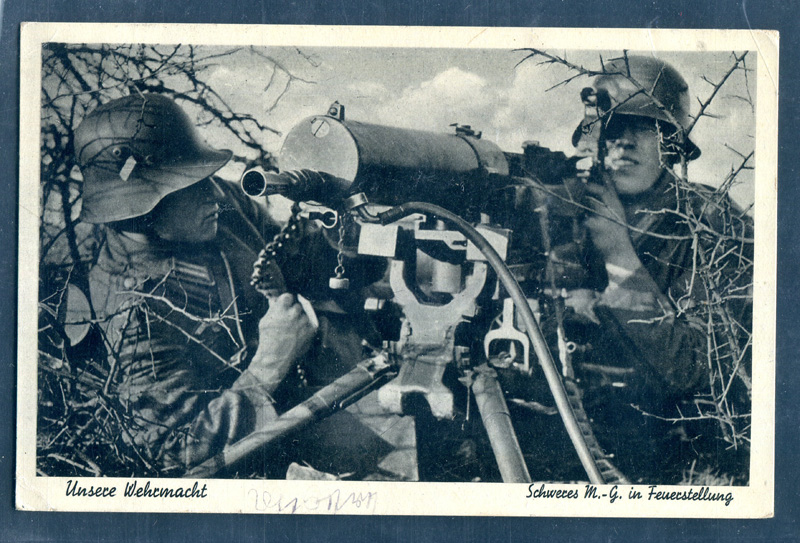 Unsere Wehrmacht. Schwerer M.-G. in Feuerstellung, befördert per Feldpost ab ZERBST 15.4.1940 nach Weste. Bataillon 11 in Zerbst.