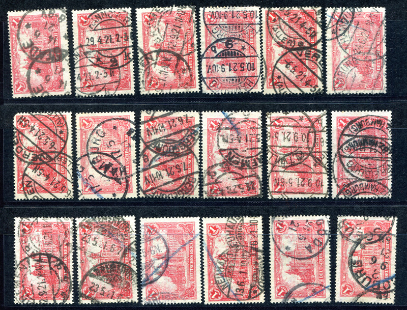 1920 Mi.Nr. 113A , Freimarke: Reichspostamt mit Flaggen. 1 Mark. 18 Marken. Farbe nicht geprüft.