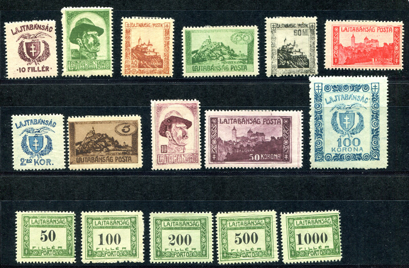 1921 Mi.Nr.69/79 und Porto 1/5 , Westungarn Nordmongolei Freimarken: Einheimische Darstellungen, sowie Portomarken 1/5 , Ziffernzeichnung, werden selten angeboten.