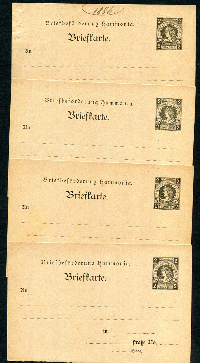 Hamburg 3 Briefkarten 2 Pfennige ungebraucht. "Briefbeförderung Hammonia".