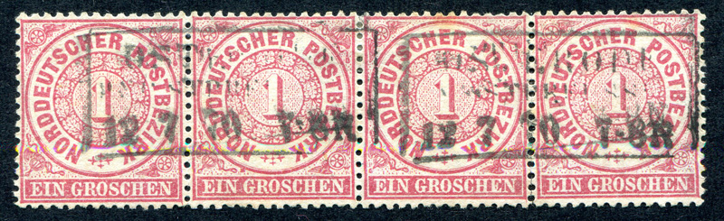1868 Mi.Nr. 4 , , 1 Groschen im 4er Streifen.