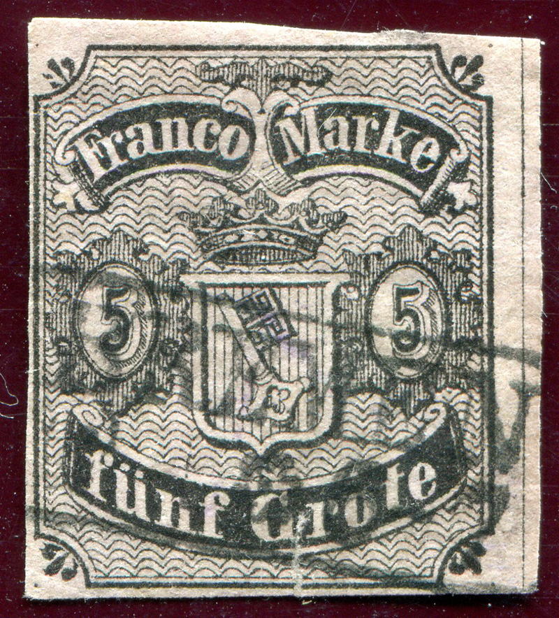 1856 Mi.Nr. 2 , 5 Grote, Bremen, mit Rechteckstempel, geschnitten.