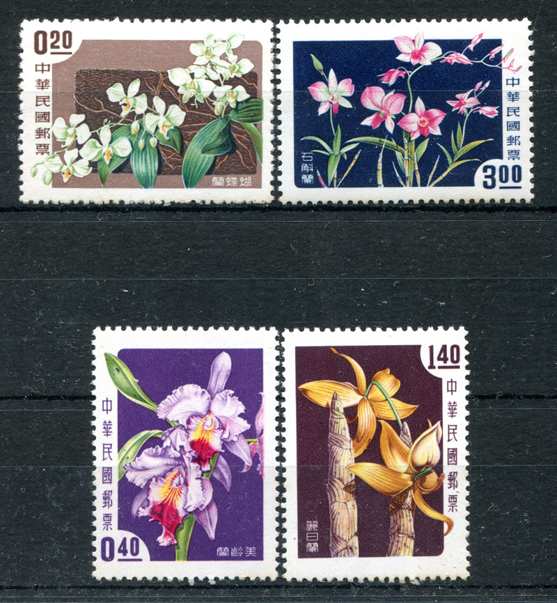 1958 Mi.Nr. 288/291 , China Taiwan. Orchideen 4 Marken, kompletter Satz. Selten angeboten.