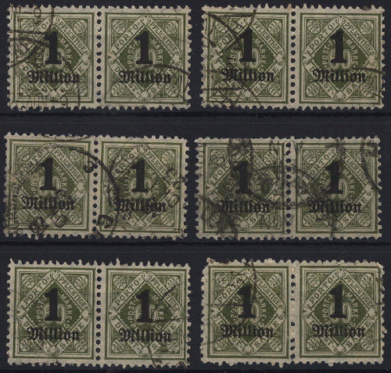 LIQUIDATIONSPOSTEN. 1923 Mi.Nr. 179 , , Dienstmarken Ziffern 1 Mio. auf 60 Pf 6mal waagerechte Paare. Mi.(380.--)Euro.