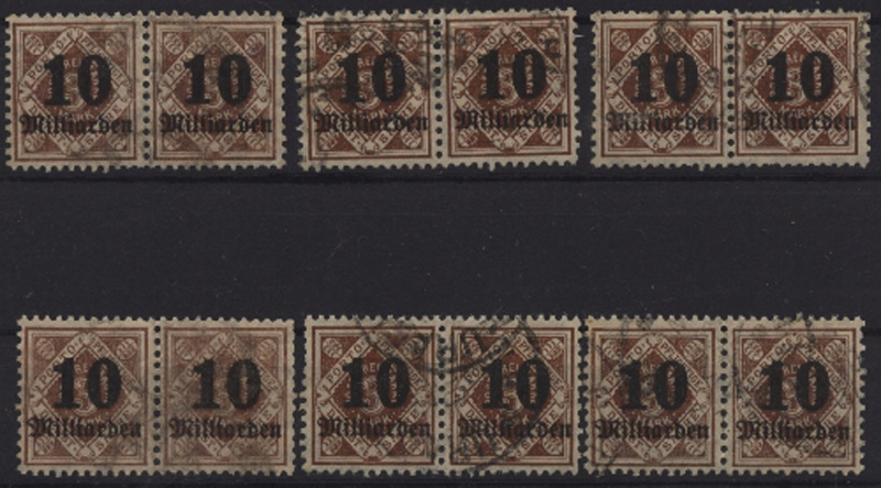 LIQUIDATIONSPOSTEN. 1923 Mi.Nr. 183 , , Dienstmarken Ziffern 10 Mrd. auf 3 Mark, 6mal waagerechte Paare. Zähnung etwas unregelmäßig. Mi.(288.--)Euro.