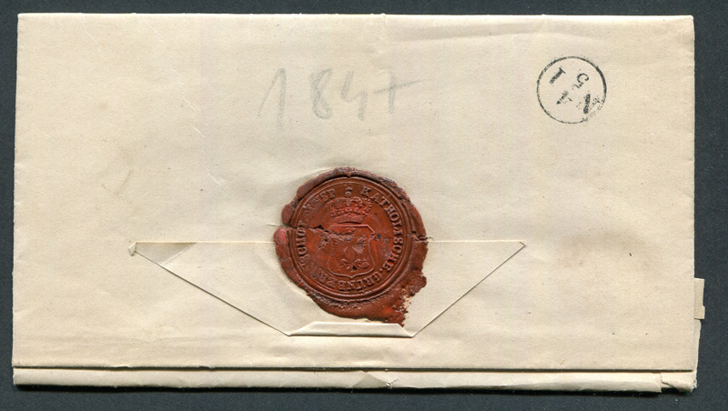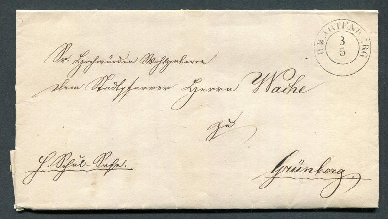 LIQUIDATIONSPOSTEN. 1847 Vorphila - Siegelbrief mit Inhalt, ab D.W.ARTENBERG nach Grünberg, gut erhalten.